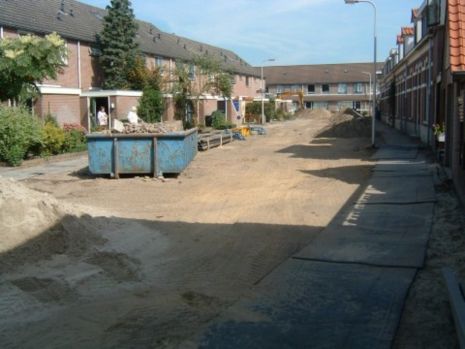 Opnemen bestaande verharding en riolering, aanbrengen nieuw betonnen riool, leveren en aanbrengen verhardingen (circa 21.000 m2).